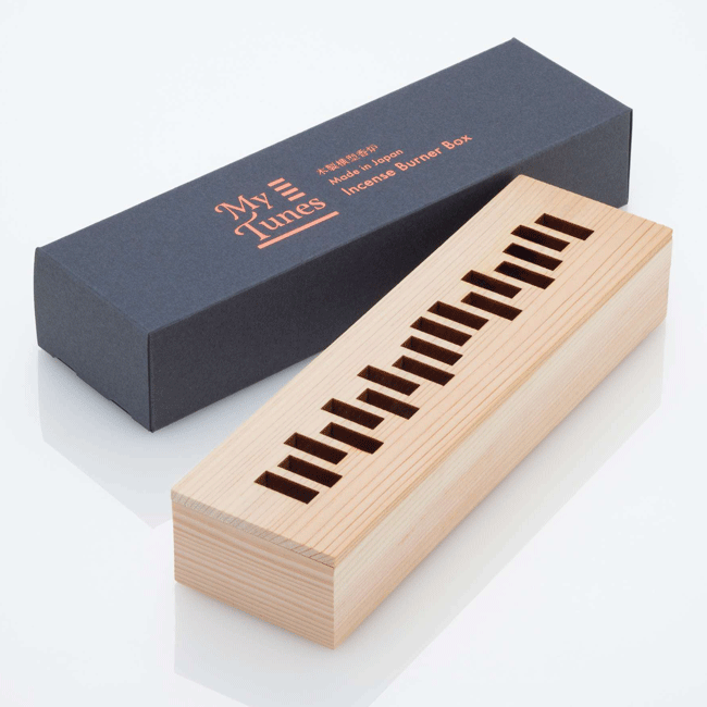 日本の伝統素材、檜(ヒノキ)を使ったお香を寝かせて焚く香炉です。